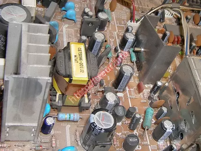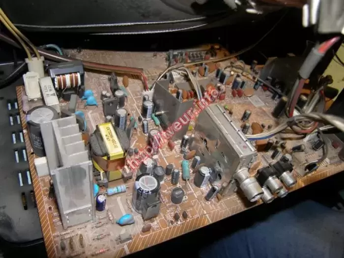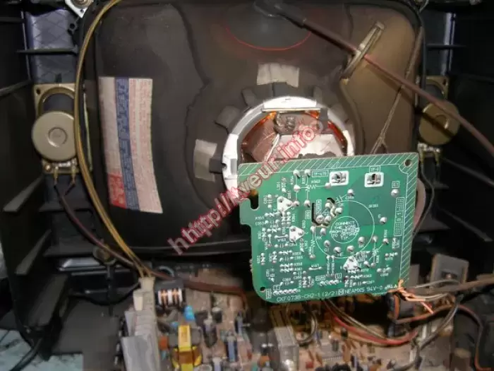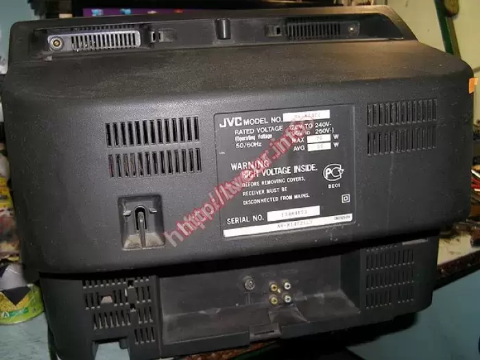 Устаревший кинескопный телевизор JVC AV-K14T2 с диагональю экрана 37 см. Он не включается, со слов заказчика, который доставил устройство в наш сервис центр, при включении телевизор цикает, включился нормально только один раз. Мы выполняем ремонт телевизоров с такой поломкой. Поскольку из строя вышел модуль питания, он подлежал реставрации. Но на этом ремонт закончен не был, так как потребовалась замена некоторых деталей, например, С 100,0 * 35 В. Сделана также общая профилактика телевизора, после чего он функционирует хорошо, клиент остался довольным.