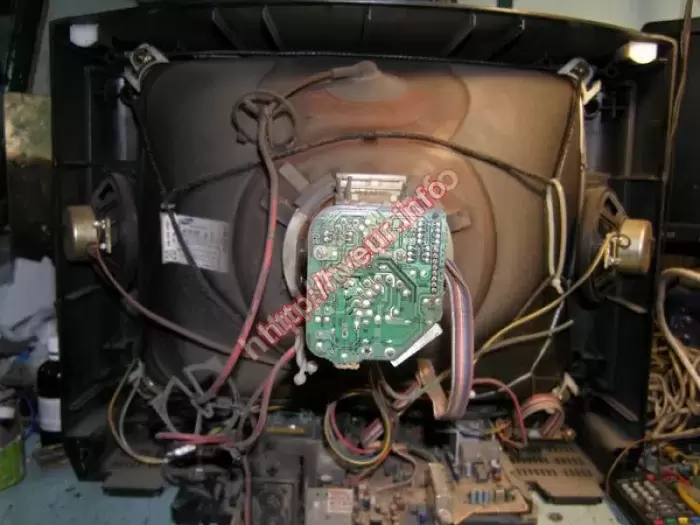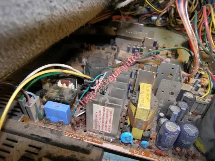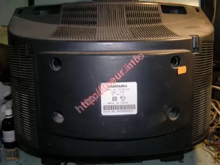 Кинескопный телевизор Samsung CK-5039ZR с экраном 54 см, он не включается, по словам клиента, вначале экран покрылся рябью. Мы беремся за ремонт телевизоров с такой поломкой, поэтому после диагностики выяснили, что проблема в модуле питания, который был восстановлен. Также пришлось переделывать блок питания (установка Kit БП Samsung вместо SMR & HIS), выполнять ряд других профилактических работ. Мастер также предупредил пользователя о том, что в телевизоре подсевший кинескоп (зеленая пушка), возможно в скором будущем также потребуется ремонт.