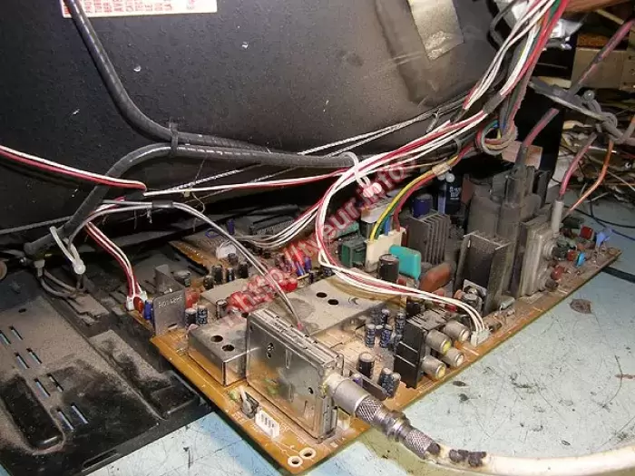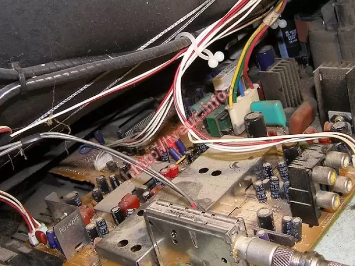 Воткнули разъем AV-входов в сервис-разъем (SDA, SCL- на массу). Ремонт телевизоров проведен в модулях питания и строчной развертки и состоял в правильном подключении разъемов, пропайке ТДКС, ТПИ и кадровой ИМС, а также профилактике.