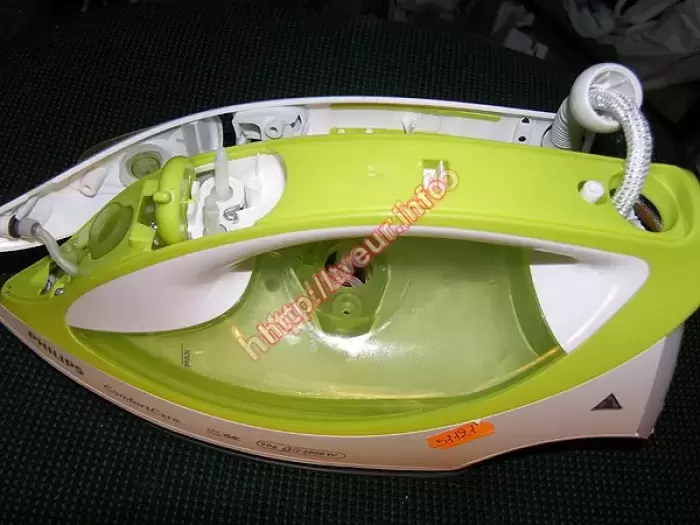 Утюг Philips GC 2720 мощностью 2000 Вт, системой защиты от накипи, самоочистки и противокапельной системой. Он перестал греть, с такой неисправностью его принесли в наш сервис, чтобы был выполнен ремонт утюгов. Состояние устройства хорошее, при этом между клеммами термостата попал и пригорел мусор. Кроме того, из строя вышла подошва, которую пришлось восстановить. Выполнена также реставрация термостата, чистка подошвы, профилактика. С помощью такого ремонта удалось возобновить работу утюга. Клиенту рекомендовано пользоваться только фильтрованной водой.