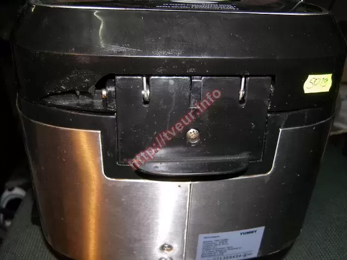 Мультиварка YUMMY YMC-505BX перестала включаться, кроме того, отсутствует нагрев. Это достаточно распространенная неисправность, которой подвержены данные устройства, поэтому мы точно знаем, как выполнять ремонт мультиварок. Эта модель наделена всем необходимым, чтобы облегчить хозяйкам приготовление разных блюд. У нее 22 программы приготовления. Благодаря 3D нагреву, блюда готовятся равномерно и качественно. При желании прибор можно использовать в качестве пароварки или фритюрницы. Электронная панель, которой наделена мультиварка, максимально простая, удобна и точна в управлении. Наличие таких функций, как поддержание температуры, таймер отсрочки — выгодно выделяют ее среди других моделей. Она поступила в нашу мастерскую в удовлетворительном состоянии, поскольку сильно зажирена, причем как снаружи, так и внутри, вежде потеки. Кроме того, сгорел термопредохранитель, есть сухие пайки. На верхней крышке сколот кусок пластмассы (отлично видно на фото № 3). Из-за того, что на дисковый нагреватель попадала жидкость, он начал прогорать (можно посмотреть на фото № 2). В результате такое неаккуратное обращение привело к тому, что требуется ремонт мультиварок, который будет сложным. В результате отремонтирована плата питания, восстановлена работоспособность дискового нагревателя. Сделана чистка прибора, заменены термопредохранитель 184* 10а 250в и две клеммы. В этот раз работу мультиварки удалось спасти, при этом если за ней не ухаживать, а также допускать попадание жидкости на дисковый нагреватель, следующий ремонт может стать нецелесообразным. Об этом сообщено заказчику.