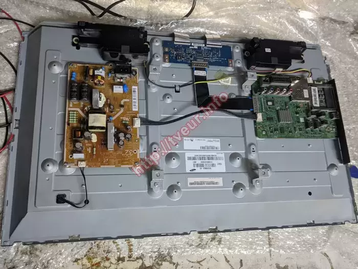 Любой сложности ремонту всегда предшествует детальная диагностика неисправности телевизора, данный случай не является исключением. Несмотря на достаточно длительную эксплуатацию телевизор выглядит хорошо. В первую очередь его полностью разобрали, что позволило узнать, что в данной модели используются такие модули, как блок питания BN44-00493B, матрица DE320BGA-B1, шлейф BN96-17116V. В ходе выполнения диагностики неисправности телевизора выяснили, что ремонт максимально актуальный и целесообразный, поскольку из строя вышли модуль питания, в котором погорели многие радиодетали, а также цепи обработки и усиления звука. Поскольку данные модули возможно восстановить на компонентном уровне, цена ремонта будет не такой высокой, как при замене этих модулей. Результаты диагностики и ориентировочную цену ремонта сообщили клиенту, который согласился на его выполнение.