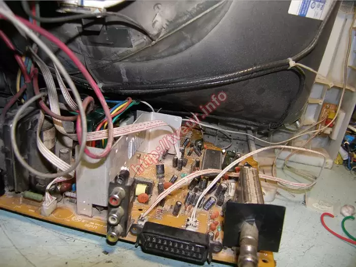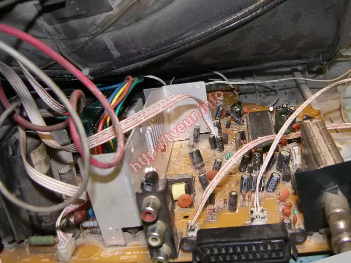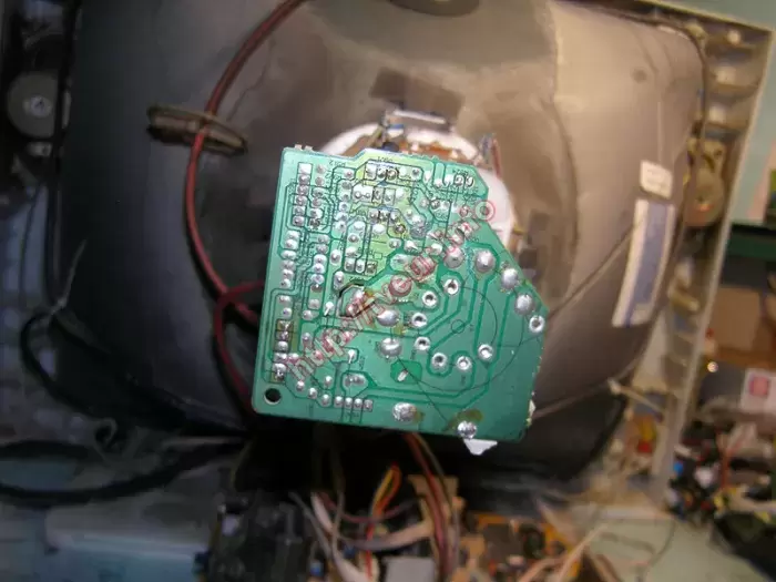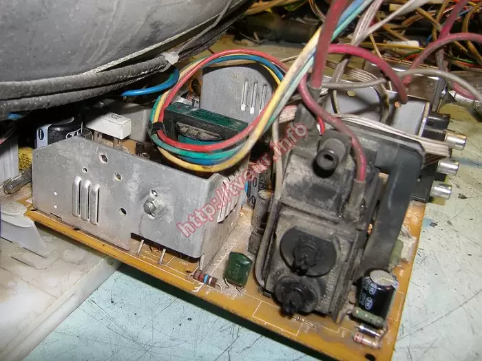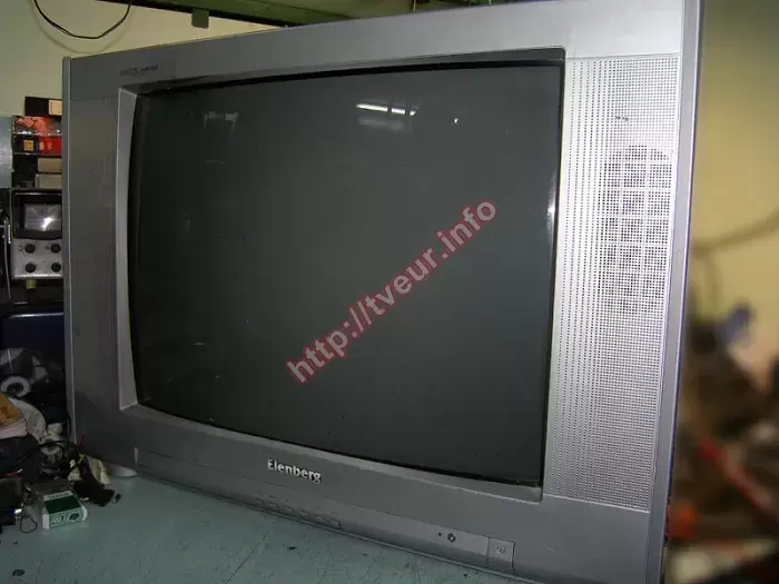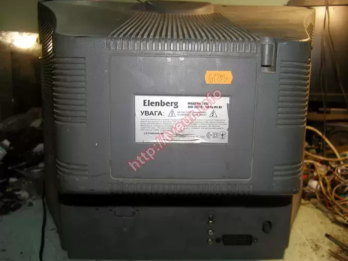 ЭЛТ-телевизор с плоским 21" экраном Elenberg 2116, наделенный одним независимым TV-тюнером не включается. По словам заказчика, после включения плохо работают кнопки управления. Ранее устройство уже пытались ремонтировать. Мы выполняем ремонт телевизоров с кинескопом, поэтому в ходе диагностики выяснили, что из строя вышли одновременно два модуля - питания и управления. Данные модули были полностью отреставрированы, заменены многие детали, включая С 470,0 * 50 В, 2SB 764, а также 6 штук микриков кнопок. После ремонта телевизор включается.