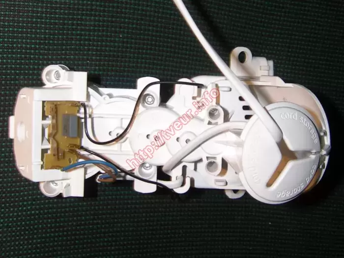 В нашу мастерскую по ремонту различной кухонной бытовой техники поступила ломтерезка Moulinex DJ 750G45, которая не включается. Со слов заказчика выяснили, что она два раза включилась и больше не работает. Данная овощерезка (мультирезка), которая собрана во Франции и предназначена для быстрой и легкой шинковки и натирания овощей, скорее является облегченным вариантом мясорубки и используется исключительно для обработки овощей. Устройство с мощностью 150 Вт, в комплекте к нему предусмотрено 5 разных насадок, а именно, две для шинковки, две для натирания и одна для измельчения. Первое впечатление от устройства - оно в отличном состоянии, по всей вероятности эта ломтерезка новая. На фото №1 отлично видно, что корпус прибора красного цвета без каких-либо механических повреждений, он чистый и очень аккуратный. При этом кнопку включения перекосило, обломался ее держатель (неудачная конструкция), роторные катушки при работе уже с не характерным запахом гари (видимо перегрузили).
