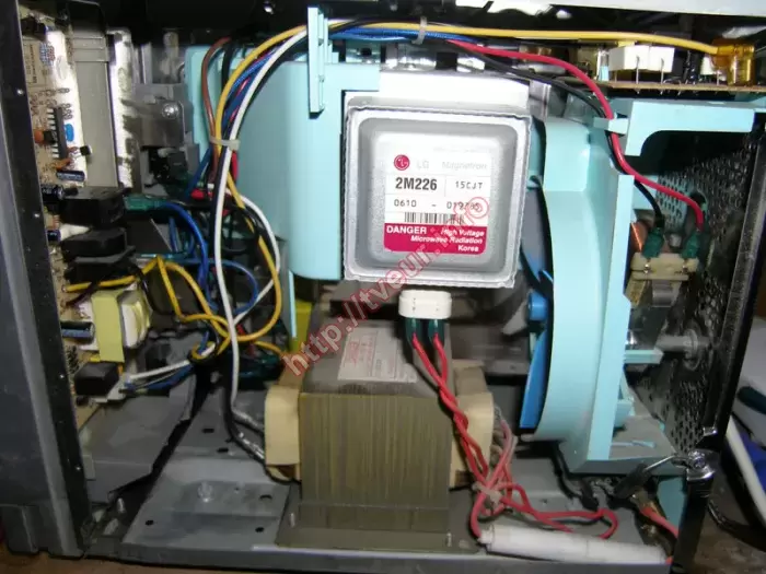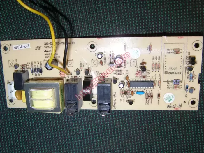 К нам в сервисный центр была доставлена СВЧ печь, которая отказывается включаться. Кроме того, у нее нет подсветки, также отсутствует слюдяная пластина. Пользователю необходимо, чтобы был выполнен срочный ремонт микроволновых печей. Данная модель с грилем, наделена мощностью 900 Вт и объемом внутренней духовки 23 литра. В ней применяется магнетрон LG 2M226 - 15CJT, модуль управления JS2-DDH23-C12 RoHS и трансформатор дежурного режима PT-6329A. У этой кухонной бытовой техники пять уровней мощности, имеется защита от детей, таймер (60 минут), акустический сигнал, а также функция автоматического размораживания и автоматического приготовления блюд. Микроволновая печь с сенсорным управлением и покрытием из нержавеющей стали. После предварительного осмотра стало понятно, что сгорела лампочка и предохранитель в сетевом трансформаторе платы управления. Кроме того, отсутствует слюда. Поскольку из строя вышли плата управления и волновод, ремонт проводился в данных модулях. На плате управления пришлось перепаять некоторые детали. Также почищен волновод. Заменены новая слюдяная пластина 65-110мм и лампочка 250в 25вт (миньон). После всех вышеописанных работ, эта микроволновая печь включается, отлично работает во всех режимах. В дальнейшем проветривать после каждого приготовления еды, периодически ухаживать.
