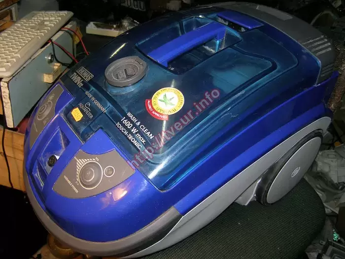 Отказывается включаться моющий пылесос Thomas Twin TT, с такой заявленной неисправностью он поступил в наш сервисный центр, где можно выполнить ремонт пылесосов всех марок и моделей, не зависимо от сложности неисправности. Данное устройство в удовлетворительном состоянии, внутри немного грязное, без контейнера, входной фильтр изношен и сильно забит, не стартует плата управления OTO402 1405372/F. Такой вывод был сделан мастером после предварительного осмотра. Этот пылесос для сухой и влажной уборки, с универсальной парковкой наделен HEPA фильтром, а также микрофильтром. Его мощность составляет 1600 Вт. Регулировка мощности выполняется на корпусе. Благодаря электронному управлению «Touch-Tronic» можно легким прикосновением выбирать необходимое значение мощности. Для установки нижнего уровня мощности в нем служит ступень «ECO». В ходе диагностики было с точностью определено, что из строя вышла плата управления. Ее удалось восстановить. Дальнейший ремонт этого моющего пылесоса состоял в его чистке. Также были перепаяны некоторые компоненты. В итоге, благодаря правильно выполненному ремонту, он полностью в рабочем состоянии. При этом пользователь предупрежден о том, что желательно заменить НЕРА фильтр, который в ближайшее время также может выйти из строя. Использовать устройство правильно, стараться не перегружать, периодически ухаживать, чистить фильтры!