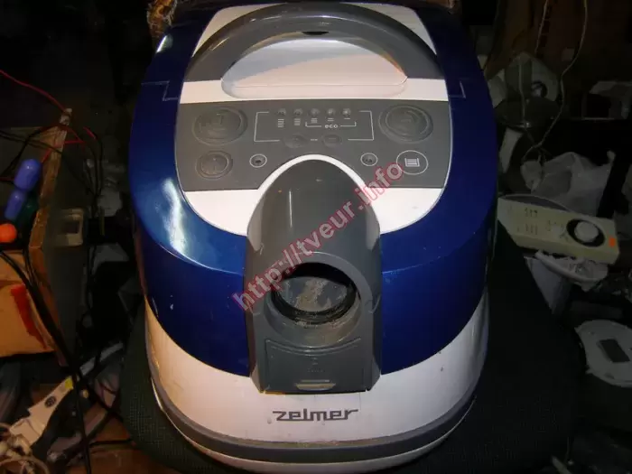 Моющий пылесос Zelmer AQUAWELT 919.0 ST перестал включаться, с такой заявленной неисправностью доставлен в сервисный центр. Чтобы точно узнать стоимость ремонта моющего пылесоса необходимо проведение предварительной диагностики, с помощью которой станет известна степень поломки, а также как выполнять ремонт. При осмотре устройства стало понятно, что эксплуатировался он не правильно, поскольку по всей видимости ним пылесосили во время проведения строительных работ. В результате пылесос в ужасном состоянии, внутри цемент, везде потеки, подшипники в двигателе шумят, произошел обрыв провода в сетевой катушке, обломан один фиксатор на боковой крышке, закрывающей отсек для фильтров. Очевидно, что такой набор неисправностей повлияет на конечную стоимость ремонта моющего пылесоса. Эта модель с объемом пылесборника 2.5 литра, контейнером для сбора воды 5 литров, контейнером для моющего средства 1,7 литра. Она объединяет в себе четыре основные функции - это мытье любых поверхностей, уборку посредством аквафильтра, уборку с мешком, а также сбор воды. Пылесос наделен хорошим набором насадок, регулировкой мощности на корпусе и большим радиусом действия (9 метров). Благодаря диагностике удалось установить, что проблема возникла в сетевой катушке, поэтому выполнено восстановление механизма сматывания шнура. В этот раз работоспособность пылесоса удалось восстановить, при этом заказчик предупрежден о том, что если своевременно не очищать фильтры и убирать ним цемент, из строя выйдет двигатель, тогда стоимость ремонтных работ окажется намного выше.
