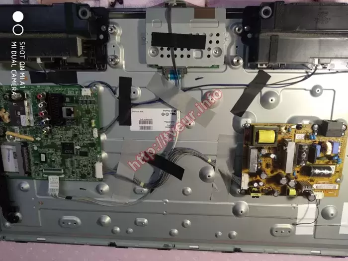 Общее состояние телевизора достаточно хорошее. На приемке его также не удалось включить, индикации питания отсутствовала. Чтобы стала возможной бесплатная диагностика телевизора, его необходимо было разобрать, что особой трудности не вызвало. Как выяснилось в данном телевизоре применены такие компоненты, как матрица LC320DXE (SF)(R1), блок питания E247691, материнская плата EAX64891306(1.1), тюнер EBL61240503 TDSQ-G601D(B). Результаты диагностики подтвердили, что требуется ремонт сгоревшего блока питания телевизора, поскольку именно он является источником проблемы. Причиной возникновения такой неисправности мог стать резкий скачек напряжения сети.