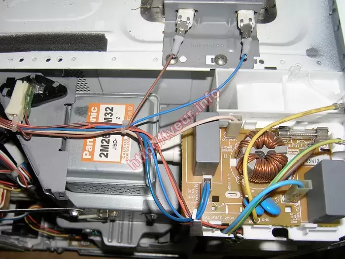 Микроволновая печь с грилем Panasonic NN-K545WF перестала включаться предположительно после скачка напряжения сети. Кроме того, отсутствует подсветка. По этой причине пользователь попросил, чтобы был произведен послегарантийный ремонт микроволновых печей в нашем специализированном сервисном центре. Мы никогда не отказываем своим клиентам, поэтому бытовая техника принята в работу. В целом состояние СВЧ печи удовлетворительное, сгорела первичная обмотка сетевого трансформатора платы управления F62605J00AP и лампочка подсветки. В данной модели используется магнетрон 2M261-M32, она с мощностью 1000 Вт и объемом 27 литров. У микроволновки сенсорный тип управления, имеется гриль, защита от детей и таймер. Она дополнена таким нужными и полезными функциями, как автоматическое приготовление и автоматическое размораживание. Как показывает практика, с такой неисправностью ремонт будет достаточно сложным. Но благодаря большому опыту мастеров и наличию современного оборудования, он вполне осуществим. В данном случае была восстановлена работоспособность, вышедшей из строя платы управления. Заменена новая лампочка 250в 25вт (миньон), перепаяны многие детали. В результате, после правильно проведенного ремонта, микроволновая печь работает. В дальнейшем во время эксплуатации стараться проветривать, с периодичностью ухаживать, проводить чистку.
