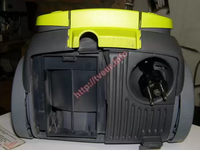 Обычный пылесос с мешком Philips FC 8390 для сухой уборки перестал включаться, после того, как дергали за провод. Об этом рассказал пользователь, которому необходимо, чтобы был выполнен ремонт пылесосов. Мы никогда не отказываем своим клиентам, поэтому устройство принято в работу. Несмотря на то, что корпус чистый, без каких-либо механический воздействий, в целом пылесос в удовлетворительном состоянии (хорошо видно на фото № 1). Это связано с тем, что в нем отсутствует мешок, входного фильтра тоже нет, оборван сетевой шнур в районе вилки, в моторном отсеке соломка (пищевой продукт). Данная модель с потребляемой мощностью 1500 Вт, 5-ти ступенчатой системой фильтрации, а также наличием фильтра тонкой очистки. У пылесоса нет регулятора мощности, при этом он оснащен индикатором заполнения пылесборника, автосматыванием сетевого шнура, ножным переключателем вкл./выкл. на корпусе. С такой неисправностью как эта, ремонт пылесосов состоял в реставрация сетевого шнура, чистке внутри. Кроме того, заменена новая сетевая вилка (фото № 3). В дальнейшем использовать пылесос правильно, за шнур не тянуть, только за вилку, без входного фильтра не эксплуатировать! Это поможет избежать нового ремонта.