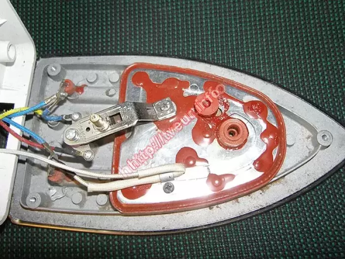 Cardinal CR-811 - это утюг с паром, мощностью 1600W, который не включается. С такой заявленной неисправностью к нам обратился заказчик, чтобы был выполнен ремонт утюгов в сервисном центре. В целом состояние утюга хорошее, сгорел предохранитель на подошве, контейнер для воды в трещинах и крошится. Поскольку проблема в подошве и контейнере, ремонт состоял в восстановлении термозащиты, реставрация контейнера для воды, профилактике. Также поменяли термопредохранитель 240* 10а 250в, две клеммы. Использовали термосиликон. Без воды на подачу пара не ставить.