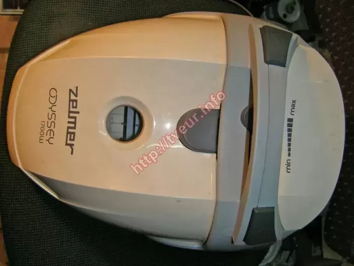 Пылесос для выполнения сухой уборки помещения - Zelmer Odyssey 450.0 ST (ZVC 302 STUA) с мощностью 1700 Вт перестал включаться. Мы всегда выполняем ремонт пылесосов с такой поломкой, поэтому принялись за его восстановление. Данная модель с мешком для сбора пыли, емкостью 3 литра, у нее универсальная парковка. Регулировка мощности находится на корпусе пылесоса, что очень удобно. К особенностям данной бытовой техники можно отнести наличие двух ручек для переноски, возможность использования электрощетки, наличие отделения для аксессуаров, а также большой радиус действия, составляющий 9 метров. В целом этот пылесос в достаточно хорошем состоянии, его корпус немного грязноватый, но не критически. Видно, что эксплуатировался он правильно. Как оказалось, проблема состоит в механизме сматывания шнура (обрыв провода в сетевой катушке Фото № 3), поэтому ремонт пылесосов был направлен на устранение данной неисправности. Выполнена пересборка втулки с контактными кольцами, перепайка проводов с нее, регулировка усилия механизма сматывания шнура. После такого ремонта, этот пылесос полностью в рабочем состоянии и сможет прослужить еще длительное время. В дальнейшем рекомендовано не перегружать, вовремя чистить фильтры.