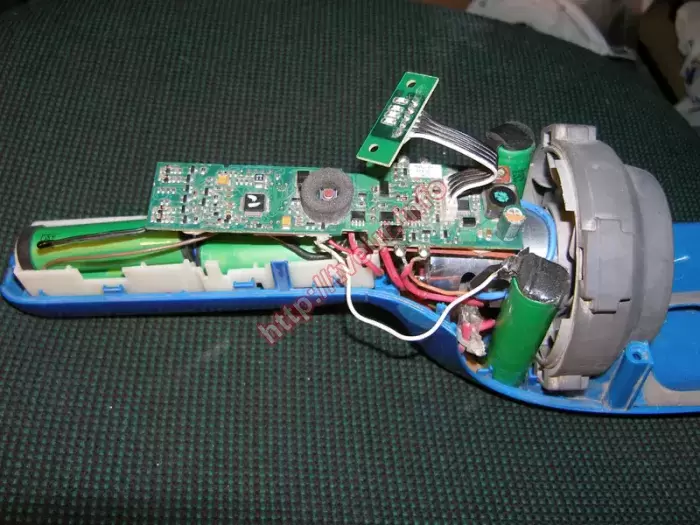 Электровеник/аккумуляторный пылесос ElectroLux ergorapido ZB2942 перестал включаться. По этой причине пользователь обратился в нашу мастерскую, чтобы был выполнен ремонт пылесосов. Этот беспроводной пылесос с аккумуляторной батареей и объемом пылесборника 0,5 литра, готов выполнять быструю уборку в любой момент. Пользователю необходимо всего лишь снять его с подставки и можно сразу приступать к работе. Особенностью модели является уникальная технология самоочистки, которая в нем используется. Как объяснил заказчик, после полного заряда пылесос работает всего 5 минут. После предварительного осмотра мастер сделал заключение, что устройство в неудовлетворительном состоянии, поскольку внутри электровеник весь покрыт слоем цемента, аккумуляторы потеряли емкость. Кроме того, очень сильно изношен двигатель, поэтому потребляет больше энергии. С такими симптомами ремонт пылесосов гарантированно будет сложным. Это связано с тем, что из строя вышли двигатель и плата управления, также требуется замена  блока аккумуляторов. В результате выполнена чистка платы, переупаковка блока аккумуляторов Li-Ion 3.7в 1500ма в количестве 5 штук, замена блока аккумуляторов. Чтобы избежать ремонта в дальнейшем, который может стать не целесообразным, использовать данный пылесос/электровеник сугубо по назначению, то есть цемент и другой строительный мусор не убирать. Из-за того, что двигатель изношен, потребляется больше энергии.