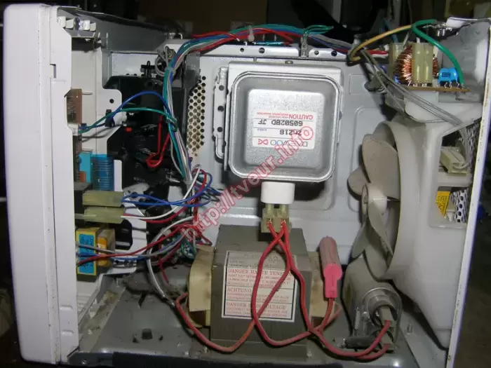 Микроволновка с грилем Daewoo KOG-6C2BW и магнетроном 2M218 60502BD JF не включается, а поскольку мы выполняем послегарантийный ремонт сенсорных микроволновок, она принята в работу. Эта кухонная бытовая техника с сенсорным типом управления, мощностью микроволн 800 Вт и объемом 20 литров, умеет готовить, разогревать и размораживать. Она наделена звуковым сигналом об окончании работы, кнопкой «30 Секунд», а также дисплеем, на котором отображается время. Внутренняя духовка устройства с акриловым покрытием и подсветкой. Предварительный осмотр показал, что внутри микроволновой печи паутина, на микрокнопку блока коммутации попал таракан, сгорел сетевой предохранитель. Внутри устройство в нормальном состоянии, слюда при этом начала уже прогорать. Для правильного решения вопроса и ремонта сенсорных микроволновок потребовалась программа диагностики, которая в нашем сервисном центре выполняется всегда. Она подтвердила предположение мастера, что из строя вышел блок коммутации. Также неисправна сетевая плата. Выполнено восстановление сетевых цепей, перепаяны некоторые компоненты, сделана чистка, заменен предохранитель 20а 250в (большой). После вышеописанного ремонта эта отдельностоящая СВЧ печь работает хорошо. В дальнейшем ухаживать, избавиться от тараканов!