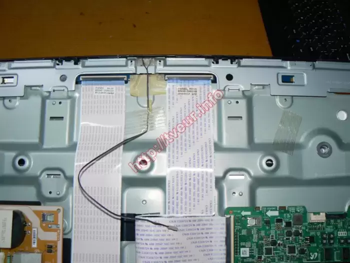 Для восстановления работоспособности блока питания на нем пришлось перепаять много разных неисправных радиодеталей. Это - диоды, резисторы, электролитические конденсаторы разного номинала, одна микросхема. Такие действия позволили решить проблему с положительным результатом, поскольку телевизор включился, он работает стабильно. Это был ремонт с выдачей гарантии. Заказчику из города Киева рекомендовано не включать телевизор во время грозы или приобрести специальный стабилизатор напряжения, который будет защищать от перепадов напряжения сети.