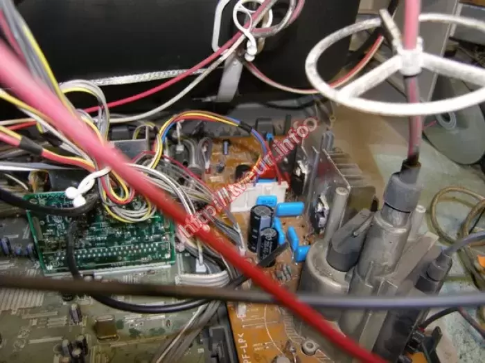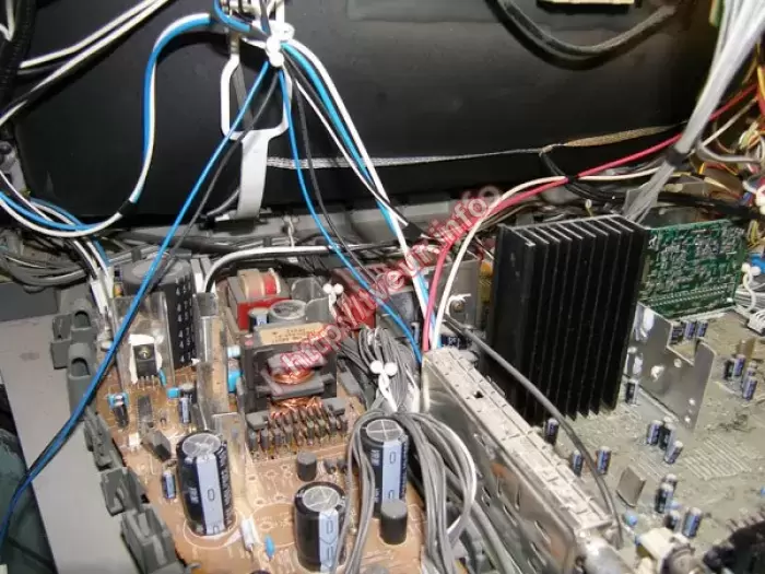 Не включается кинескопный ТВ – проблема в модуле коррекции растра (ошибка 02). Ремонт телевизоров заключался в замене пленочных конденсаторов (3 шт.), также были поменяны микросхемы LM393N и STP5NB40, проведена профилактика.