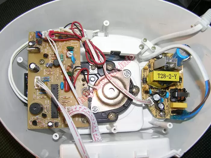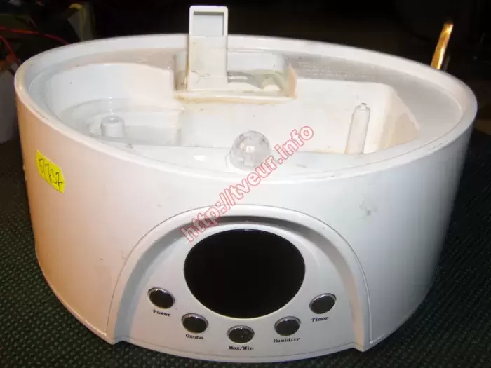 Ультразвуковой увлажнитель воздуха Neoclima SPS-904 плохо работает, он перестал включаться, у него отсутствует подача пара. Пользователь, который доставил устройство в наш сервисный центр попросил, чтобы был выполнен ремонт увлажнителей воздуха в срочном порядке. Данная модель с основными функциями озонирование, увлажнение наделена потребляемой мощностью 38 Вт. Устройство способно обслуживать площадь до 40 кв.м. У него электронный тип управления, он может работать в двух режимах: холодный пар или теплый пар. Кроме того, эта климатическая техника дополнена электронным гигрометром, таймером автоматического отключения, пультом ДУ. К особенностям прибора следует отнести возможность автоматического поддержания оптимального уровня влажности и автоматического отключения при низком уровне воды. В нем используется плата питания KB-2150 и трансформатор T28-2-Y. Техника в удовлетворительном состоянии. Осмотрев этот увлажнитель воздуха мастером было сделано заключение, что из строя вышел УЗВ блок. Помимо этого, устройство все в известковом налете, сгорел силовой транзистор УЗВ платы, произошел обрыв провода на УЗВ мембране. Как показывает практика, это достаточно сложная поломка, поэтому ремонтные работы тоже будут не простыми. В данном случае было выполнено восстановление УЗВ платы и УЗВ мембраны. Также пришлось перепаивать много разных деталей, таких как, транзистор BU406, микросхема SG6848T и другие. После ремонта этот увлажнитель работает отлично. В дальнейшем использовать только фильтрованную воду.