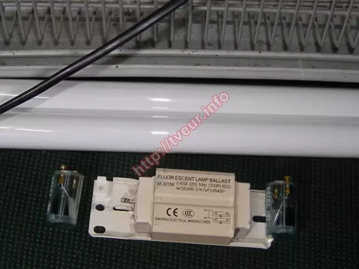 Первоначальный осмотр показал, что в целом данная бытовая техника в хорошем состоянии, при этом ранее ее ремонт уже выполнялся. Проведенная диагностика показала, что произошел обрыв дросселя, один стартер не рабочий, две лампы в нерабочем состоянии (погорели), высокого напряжения нет. С такими неисправностями ремонт оказался достаточно сложным, поскольку пришлось менять много разных составляющих, в число которых вошли конденсатор 0,47мкф 400в, две новые люминесцентные лампы 15вт 250в (видно на фото №3), два стартера ST151, а также дроссель L36.170. Как и просил заказчик, все работы сделаны в срочном порядке. Он поставлен в известность, что если в будущем придется выполнять замену каких-либо деталей, менять их на точно такие, какие уже есть!
