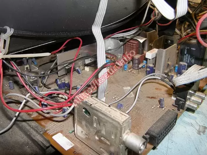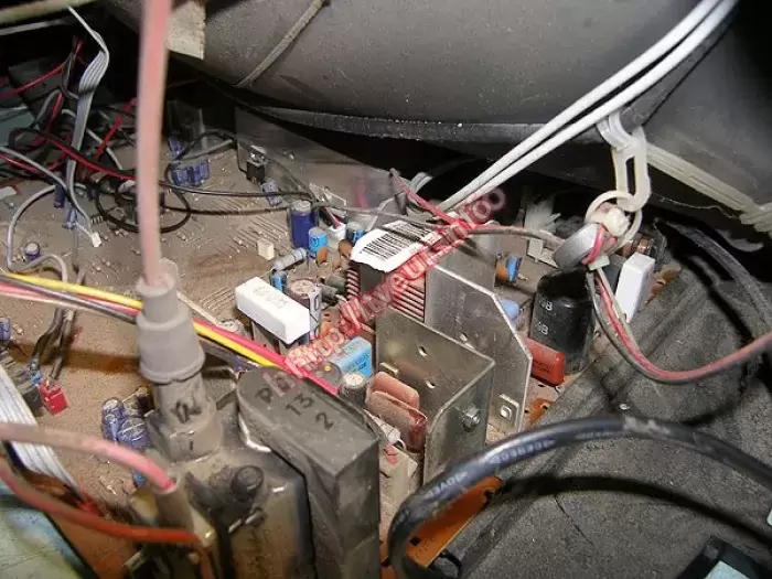 Телевизор Rainford TV 5155 с 20-дюймовым обычным кинескопом, форматом экрана 4:3 и количеством каналов -100. Он не включается, постоянно «цикает», а это значит, что необходим ремонт телевизоров в сервис центре. Проведенная диагностика подтвердила предположение мастера, что проблема в модуле строчной развертки, который пришлось полностью восстановить. Помимо этого были также поменяны многие детали, в том числе С 22,0 * 50 В, 2SC 5388 и другие. После такого профессионального ремонта телевизоров, данная модель опять включается и работает хорошо.