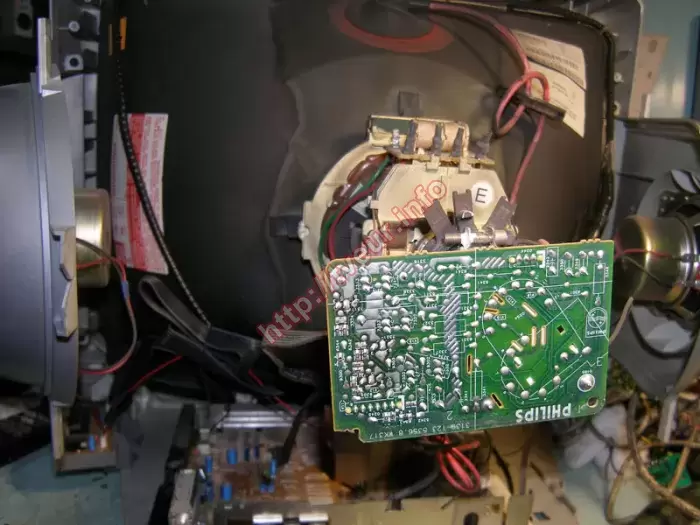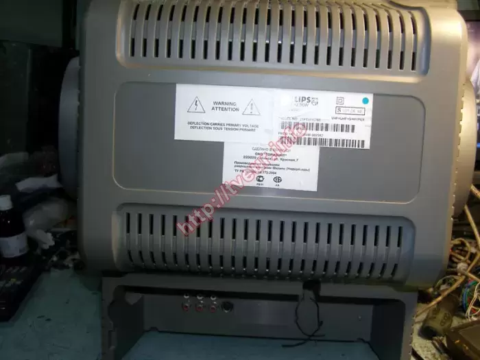 В кинескопном телевизоре Philips 21PT5117/60 с экраном 54 см есть неисправность, он перестал включаться, после включения нет приема каналов. Поскольку из строя вышли одновременно два модуля — питания и управления, ремонт телевизоров состоял в восстановлении их работоспособности. Была выполнена замена и прошивка ПЗУ, регулировка в сервис-режиме, профилактика. Также не обошлось без замены многих составляющих, таких к примеру, как С 47,0 * 160 В, дроссель, 24С16 и др. Благодаря правильно выполненному ремонту, телевизор в рабочем состоянии, он включается.