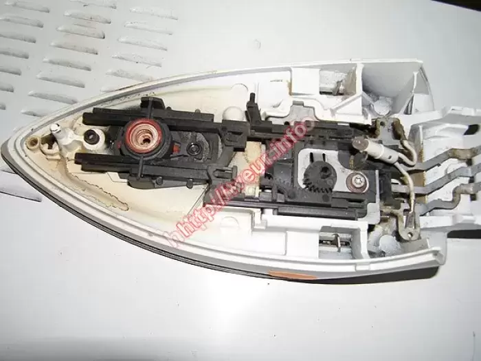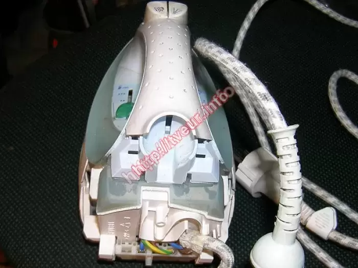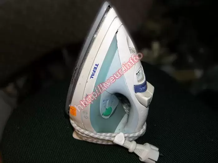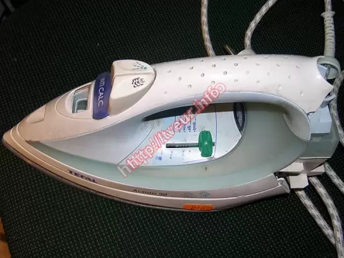 Утюг Tefal avantis 90 мощностью 1700 Вт не включается. Со слов клиента узнали, что в области шнура запах, был треск, он также просит по возможности заменить шнур. Мы всегда выполняем ремонт утюгов, поэтому на приемке выяснили, что он действительно не работает, очень потертый, трещины на корпусе, обломаны некоторые фиксаторы, запылен, потеки, обрыв сетевого шнура, подошва подгоревшая, помпа подачи пара клинит, ползунковая кнопка сломана, шторка закрывающая контейнер для воды сломана. Ремонт в замене ползунковой кнопки, сетевого шнура с колодкой, чистке, профилактике.