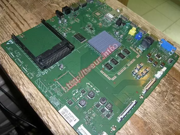 LCD телевизор Philips 42PFL4007H/12 с большой 42" матрицей, разрешение которой 1920x1080 пикселей, угол обзора 178°/178°, яркость 350 кд/м² и контрастность 500000:1. Он не включается, именно по этой причине телевизор был доставлен в нашу сервис мастерскую. Выполнив диагностику стало ясно, что проблема в плате SSB, но восстановить ее нет возможности, поэтому ремонт телевизоров состоял в замене платы SSB 313929713402, что обошлось клиенту достаточно дорого. Выполнен ряд профилактических работ, что вместе с ремонтом вернуло телевизору хорошую работоспособность.