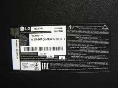 В нашу мастерскую был доставлен телевизор LG 43UJ630V, аккуратно упакованный владельцем в оригинальную коробку. Со слов клиента, устройство полностью перестало включаться - индикатор дежурного режима не горит, экран не реагирует на нажатие кнопок. Он сообщил, что телевизор был приобретен в 2018 году и все время использовался в домашних условиях. Несмотря на бережное обращение, спустя несколько лет эксплуатации техника неожиданно вышла из строя. Для владельца это стало неприятным сюрпризом, ведь от бренда LG обычно ожидают высокой надежности и продолжительного срока службы. Поэтому он обратился в нашу мастерскую, чтобы мы выполнили ремонт ЖК телевизора LG. На основании предоставленного описания неисправности специалисты приняли устройство на диагностику с последующим профессиональным восстановлением его работоспособности.