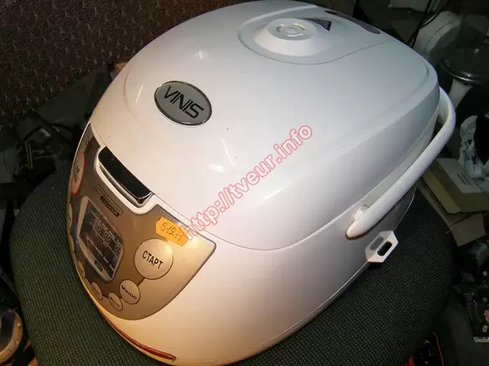 В нашу сервисную мастерскую принесли мультиварку Vinis VMC - 5015W, у которой не закрывается крышка, поскольку сломана кнопка фиксации. Мы выполняем ремонт мультиварок, не зависимо от сложности поломки, поэтому устройство принято в работу. Данная модель позволит полностью автоматизировать приготовление большого количества разнообразных блюд, а с помощью оптимальных температурных режимов можно готовить любые лакомства. Благодаря удобной панели управления, ЖК-дисплею и встроенному микропроцессору обеспечивается легкое приготовление, а также простота использования. Эта мультиварка с мощностью 1000 Вт и объемом чаши 5 литров. У 8 автоматических программ, имеется 3D нагрев, пароварка и функция «Йогурт». К особенностям данной бытовой техники стоит отнести возможность регулирования времени приготовления, а также сохранение блюд в режиме подогрев (до 13 час.). Осмотрев мультиварку мастер сделал заключение, что ее состояние удовлетворительное. У нее сломана кнопка фиксации крышки, дисковый нагреватель с нагаром. С такой проблемой как эта, ремонт состоял в замене новой кнопки фиксации крышки, после чего крышка закрывается отлично. Чтобы избежать подобных неприятностей, использовать технику аккуратно, периодически ухаживать, не допускать попадания жидкости на дисковый нагреватель.