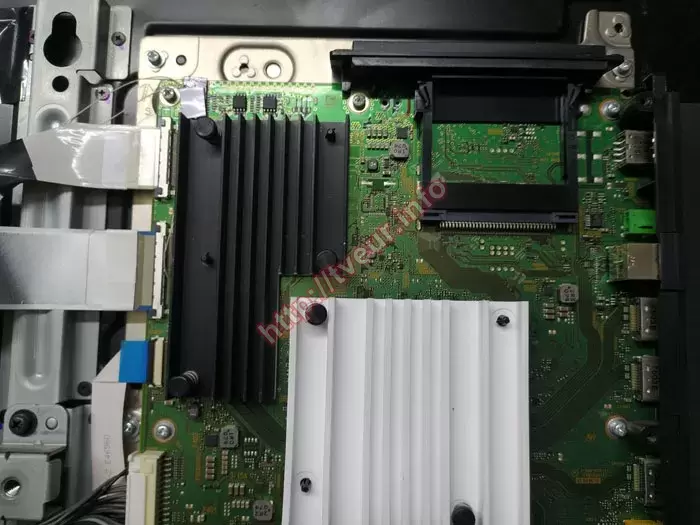 Общее состояние телевизора хорошее, у него аккуратный корпус, рамка и экран. Чтобы была выполнена углубленная диагностика ЛЕД телевизора, его полностью разобрали. Как оказалось, ремонта не избежать, более того, неисправность достаточно сложная, поскольку из строя вышли цепи LVDS: центральная плата и плата T-con. Исходя из этого ремонт должен быть направлен на восстановление работоспособности этих модулей. В современных телевизорах плата T-con представляет собой самостоятельное устройство (блок или плату), которое выполняет преобразование сигналов, поступающих по LVDS шине от видео контроллера в сигналы по управлению драйверами LCD матрицы. Также данный компонент несет ответственность за формирование для драйверов опорных напряжений, которые обеспечивают гамма коррекцию. С помощью диагностики ЛЕД телевизора установили, что вышедшие из строя модули можно восстановить на компонентном уровне, поэтому их замена не потребуется.