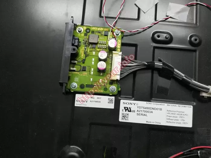 При первоначальном осмотре телевизора сделано заключение, что он в хорошем состоянии, у него аккуратный корпус и рамка, а экран без каких-либо механических повреждений. В первую очередь телевизор полностью разобрали и узнали, что в нем используется матрица YD7S490DND01B. В ходе углубленной диагностики точно установили, что ремонт ЖК телевизоров Сони максимально актуальный, более того, он будет сложным и дорогим. Это связано с тем, что неисправными оказались цепи LVDS: центральная плата и плата T-con. Исходя из практики, в современных телевизорах плата T-con выступает в качестве самостоятельного устройства (блока или платы), которая призвана выполнять преобразование сигналов, поступающих по шине LVDS от видео контроллера в сигналы, управляющие драйверами ЖК матрицы. Более того, этот компонент несет ответственность за формирование опорных напряжений для драйверов, обеспечивающих гамма коррекцию. Когда она неисправна, есть два пути решения проблемы - ее замена или ремонт.