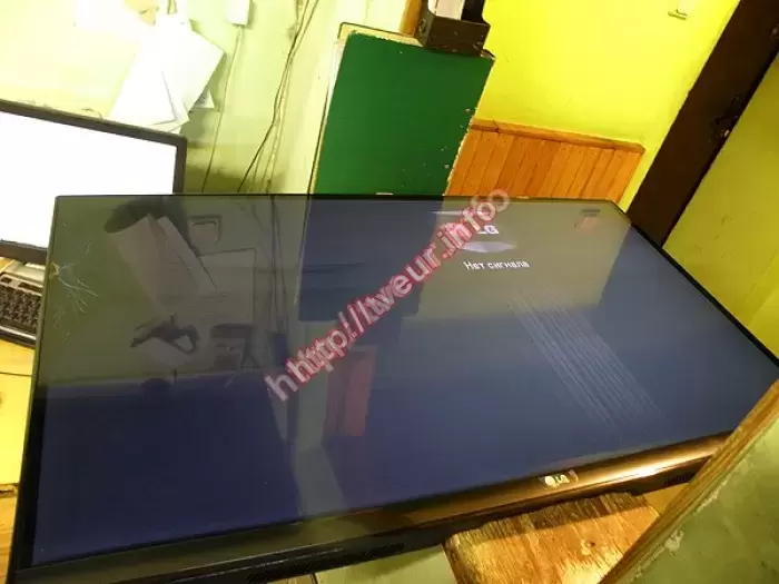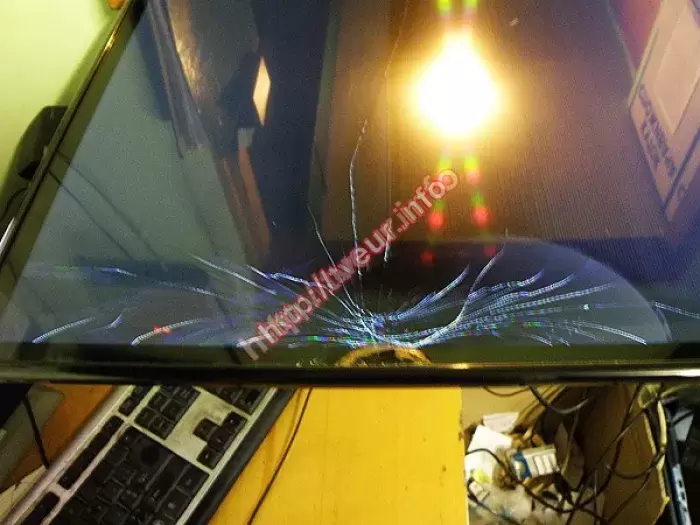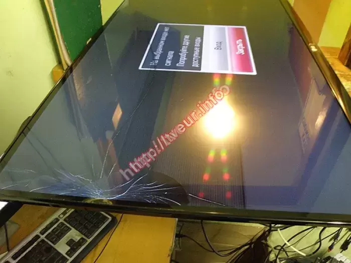 В 47" LED телевизоре разбит дисплей, появилось множество трещин. Ни для кого уже не секрет, что ремонт, в данном случае, не возможен, потому была произведена замена матрицы телевизора. Причина подобных работ - небрежная эксплуатация.