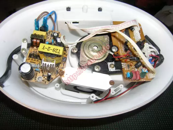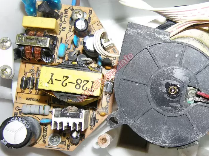 Не работает ультразвуковой увлажнитель воздуха Vitek Vt-1765, он не включается, нет достаточной подачи пара. Кроме того, заказчик, который доставил его в наш сервисный центр, утверждает, что не работает вентилятор. Мы всегда выполняем ремонт увлажнителей воздуха и другой климатической техники, поэтому приняли его в работу. Осмотрев данное устройство был сделан вывод, что его состояние удовлетворительное, поскольку прибор внутри весь в извести, произошел обрыв дросселя на плате питания, сгнила плата на кулере. При этом трансформатор T28-2-Y полностью в рабочем состоянии. Данная модель (ионизация, увлажнение) с потребляемой мощностью 30 Вт и емкостью резервуара для воды 5 литров. Увлажнитель рассчитан на площадь в 50 кв. м. Он наделен самыми прогрессивными функциями и характеристиками, у него имеется интегрированный гигростат, индикатор включения и индикатор низкого уровня воды. Все данные высвечиваются на LCD дисплее. Работать с этим увлажнителем воздуха можно дистанционно, поскольку в комплекте поставки предусмотрен пульт ДУ. Возможность регулировки направления увлажнения и скорости вентилятора/интенсивности испарения, это далеко не все преимущества данной модели. В ходе выполненной диагностики стало понятно, что из строя вышел модуль питания и вентилятор. В данном случае модуль удалось отремонтировать, при этом вентилятор SF5015SL требует замены. Дальнейший ремонт состоял в том, что были перепаяны многие детали, выполнена замена нового вентилятора в сборе ORH-028D. Заказчику рекомендовано пользоваться только фильтрованной водой, так этот увлажнитель сможет проработать еще длительное время.