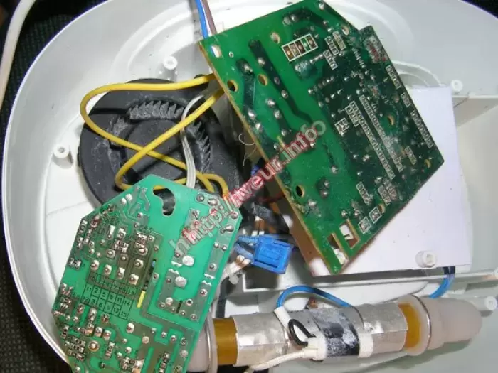 К нам обратились, чтобы был выполнен ремонт увлажнителей воздуха, поскольку Neoclima SPS-900 не включается, нет испарения. Из-за интенсивной влажности все платы окислились, проржавели, известь в отсеке для воды, требуется замена ультразвуковой мембраны. Ремонт этого увлажнителя воздуха состоял в замене ультразвуковой мембраны, восстановлении монтажа, чистке, профилактике всех плат — питания, управления, коммутации и платы ультразвуковой мембраны. Использовали лак-Л8 и лимонную кислоту. Использовать фильтрованную воду, плохая защита плат от влаги.