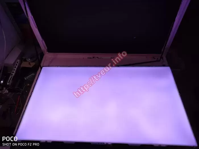 Чтобы заказать и получить новые планки подсветки необходим определенный срок (как правило, неделя), при этом заказчик прочил, чтобы ремонт был срочным, поэтому решили перепаять неисправные светодиоды (6 штук), которые нужных параметров были в наличии. Кроме того, перепаяли некоторые детали в блоке питания, чем уменьшили ток светодиодов подсветки на 20 процентов. Это позволят продлить срок службы светодиодов, которые остались. Для выполнения такого ремонта ЛЕД подсветки в телевизоре потребовался один день. В результате изображение появилось, подсветка равномерная, звук есть, а это значит, что телевизор полностью в рабочем состоянии.