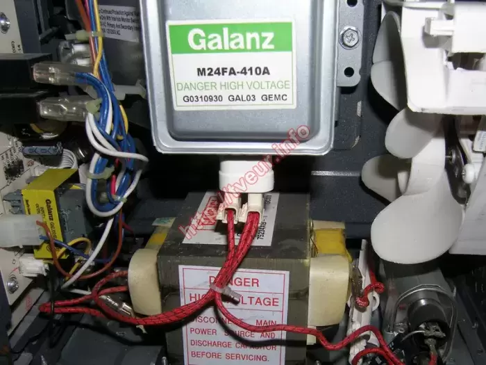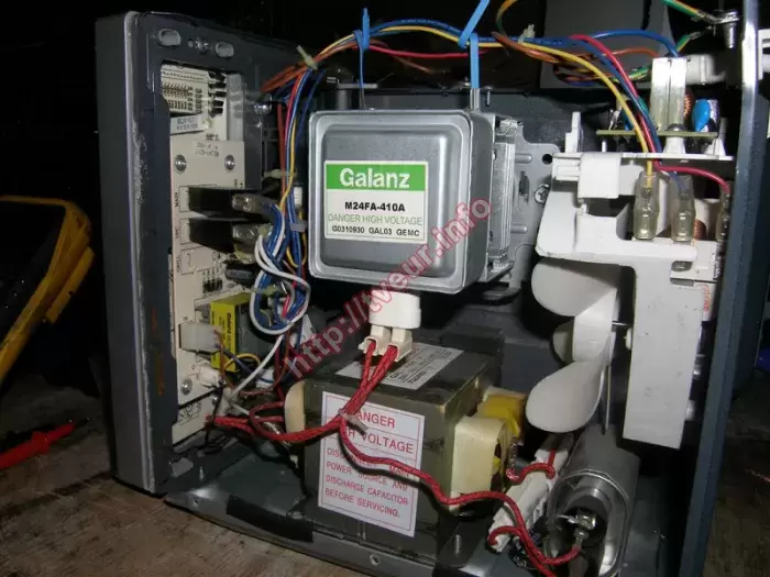 Пользователь микроволновой печи без гриля Gorenje MO-17 DE, в котором используется магнетрон Galanz M24FA-410A, обратился к нам за помощью, поскольку во время работы пропал нагрев в СВЧ. Мы выполнили не один ремонт микроволновых печей с такой неисправностью, поэтому точно знаем, как решить проблему. Данная модель со сплошным застеклением дверцы, ее внутренняя сторона без рамки и каких-либо отверстий, поэтому там не скапливается грязь. Более того, внутренние стекла, как и сама дверца, легко снимаются, очищаются и без усилий устанавливаются на место. Данная бытовая техника поступила в хорошем состоянии, ее внутренняя духовка, объем которой 17 литров, чистая, без жира и потеков, слюдяная пластина не прогоревшая (можно посмотреть на фото № 1). Разобрав устройство и выполнив диагностику стало понятно, что проблема возникла в ВВ цепях, поэтому ремонт микроволновых печей выполнялся в данном узле. Кроме того, пришлось выполнять чистку волновода. Конечным этапом ремонта стала замена ВВ предохранителя 750ма 5кв в сборе. Теперь эта микроволновая печь с мощностью 700 Вт и шестью уровнями мощности работает без сбоев. При дальнейшей эксплуатации использовать микроволновку правильно, проветривать после приготовления блюд.