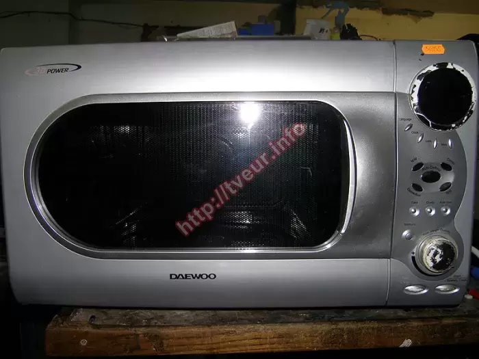 В микроволновой печи с конвекцией и грилем Daewoo KOC-1BOK нет нагрева в СВЧ, кроме того отсутствует подсветка. С такой заявленной неисправностью она поступила в наш сервисный центр, где всегда выполняется ремонт микроволновых печей, не зависимо от сложности поломки. Пользователь попросил, чтобы мастер также проверил управление с клавиатуры, так как по его мнению, она не работает. Данная модель с объемом внутренней духовки 34 литра, мощностью микроволн 1000 Вт и механическим таймером. После предварительного осмотра этой бытовой техники было сделано заключение, что она в удовлетворительном состоянии, у нее сильно потерты ручка таймера и окошко дисплея, сгорела одна лампочка подсветки, магнетрон потерял эмиссию. Кроме того, из строя вышли ВВ цепи. С такой неисправностью ремонт будет не простым, поскольку требуется замена нового магнетрона 2M218 (20323CD JF P) и других деталей. Благодаря большому опыту мастера, работоспособность ВВ цепей удалось восстановить. Также были заменены новая слюдяная пластина 90-135мм, магнетрон «GALANZ» M24FB-610A, галогеновые лампочки подсветки на 125в. Проведен ряд других работ - управление с клавиатуры имеется. После выполненных восстановительных работ эта микроволновая печь полностью в рабочем состоянии. При дальнейшей ее эксплуатации, в обязательном порядке после приготовления блюд - проветривать!