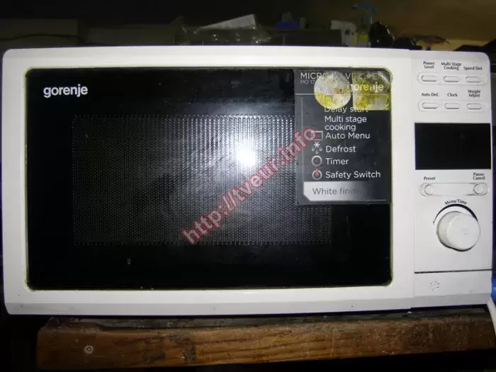 Как свидетельствует практика различная бытовая кухонная техника, и в том числе СВЧ печи, ломаются достаточно часто. А это значит, что нужен ремонт микроволновых печей, который лучше доверить опытным специалистам, работающим в сервисных мастерских. Это связано с тем, что там имеется современное оборудование, без которого восстановительные работы не возможны. В данном случае из строя вышла отдельно стоящая микроволновая печь (соло) Gorenje MO17DW, у которой мощность 700 Вт, а объем внутренней духовки - 17 литров. В ней используется магнетрон M24FA-410A. Она поступила с жалобой на то, что нет нагрева, по словам пользователя, выбивала пробки. Кроме того, нет подсветки, искрит при работе СВЧ. Осмотрев устройство мастер сделал заключение, что оно в удовлетворительном состоянии - во-первых отсутствует куплер. Во-вторых, до нас СВЧ печь вскрывали, пытались ремонтировать, но ничего не получилось. Более того, крышку одели не правильно, дно под роллером проржавело, сгорел ВВ предохранитель и лампочка подсветки, слюда начала прогорать, подгорели контакты в микрике блока коммутации. Благодаря программе диагностики стало точно понятно, что проблема состоит в ВВ цепях, а также блоке коммутации, поэтому ремонт проводился в данных модулях, работоспособность которых удалось возобновить. Кроме того, отреставрированы микрики, заменена новая слюда 45-115мм, лампочка 250в 25вт (миньон), ВВ предохранитель 750ма 5кв. После ремонта микроволновка работает, пробки не выбивает. В дальнейшем, после приготовления блюд проветривать!