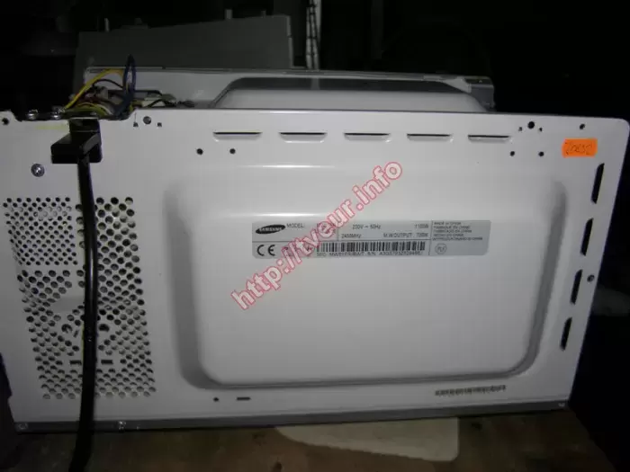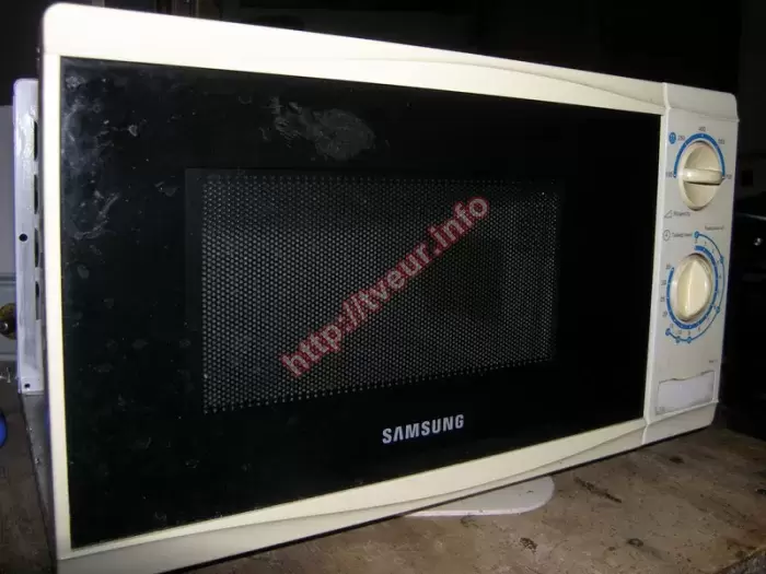В микроволновой печи (соло) Samsung MW61FR отсутствует нагрев в СВЧ. Это одна из самых распространенных неисправностей, которым подвержены данные устройства. В любом случае потребуется ремонт микроволновых печей в специализированной мастерской. Данная модель без гриля, наделена мощностью 700 Вт и пятью уровнями мощности, а именно, высокая 700 Вт, умеренно высокая 550 Вт, средняя 400 Вт, умеренно низкая (разморозка) 250 Вт и низкая 100 Вт. Объем внутренней духовки печи составляет 17 литров, имеется вращающийся стеклянный поднос. Микроволновка поступила в удовлетворительном виде, внутри она зажиренная и грязная (смотреть фото № 3), что особенно видно на белом эмалированном покрытии. Корпус также не аккуратный, на черных его частях видны потеки, отпечатки пальцев и др. (фото № 1). Диагностика показала, что не работает схема мягкого старта, поскольку из строя вышла плата. Исходя их этого, ремонт микроволновых печей направлен на возобновление работоспособности данного модуля. Выполнено восстановление питания ВВ цепей, перепаяны некоторые компоненты, сделан ряд профилактических работ. После ремонта, неисправность полностью устранена. Заказчику даны советы по дальнейшей правильной эксплуатации этой кухонной бытовой техники.