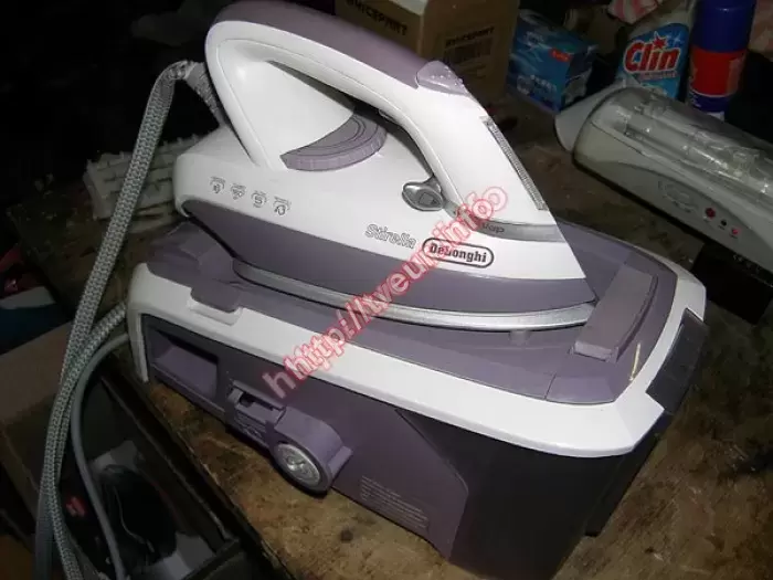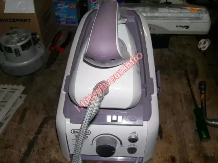 В утюге парогенераторе Delonghi Stirella VVX 1660 DUAL VAP с мощностью 2200 Вт нет подачи пара, кроме того, бойлер и выпускной клапан забиты известью. К обратились за помощью, чтобы был выполнен ремонт утюгов. В ходе диагностики выяснили, что из строя вышла система подачи воды. В данном случае выполнена чистка системы подачи воды-насос-бойлер-клапан-шланг-подошва. Использовали эпоксидный клей, лимонную кислоту. Это позволило вернуть утюгу работоспособность. Во избежание в дальнейшем ремонта, пользователю рекомендовано использовать только фильтрованную воду.