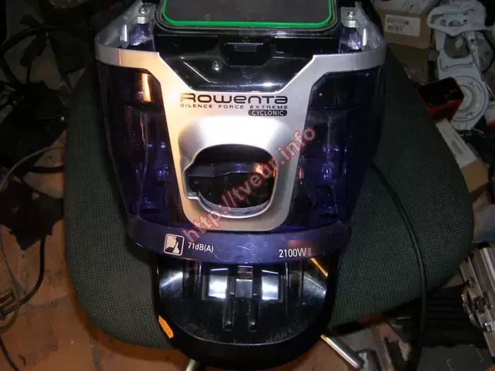 Пылесос для сухой уборки без мешка (с контейнером) - Rowenta Cyclonic RO 7845 плохо работает, у него нет тяги во время работы. Пользователь принес его в нашу мастерскую, где можно выполнить ремонт пылесосов всех моделей от любых производителей и попросил, чтобы его починили срочно. Внешнее состояние этой бытовой техники хорошее, при этом после ее осмотра стало понятно, что внутри пылесос весь в цементе, он сильно запылен, видны потеки (предположительно ним пытались сделать влажную уборку). Кроме того, двигатель развалился (пластиковый корпус), щетки заклинило, фильтры очень сильно забиты, нет резиновой прокладки в верхнем контейнере. Такое состояние устройства говорит о том, что использовался он не по назначению, ним убирали строительный мусор и цемент, чего делать крайне не рекомендуется. Как результат, требуется ремонт пылесосов, который будет сложным. Во время проведения диагностики стало понятно, что из строя вышел двигатель. Кроме того, проблема в контейнере. Исходя из этого, сделана чистка и смазка двигателя, что избавило от его замены. Для этого пылесос пришлось практически полностью разбирать. Заменена резиновая прокладка, сделан ряд других профилактических работ. После проведенного ремонта, эксплуатировать пылесос строго по назначению (только для сухой уборки помещения), цемент, а также другой строительный мусор больше ним не убирать.
