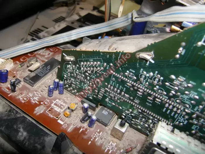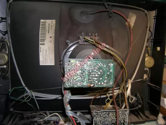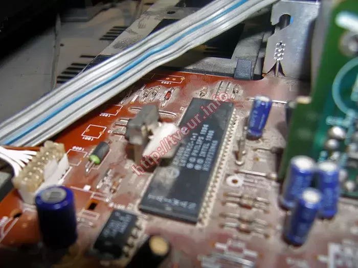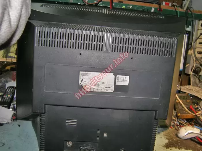 В устаревшем телевизоре Philips 28PT4453\00 нет управления с кнопок и с пульта ДУ, ранее он уже ремонтировался. При простреле старого ТДКС из строя вышли ИМС ПЗУ и транзистор по синхронизации процессора, была выполнена замена, но неаккуратно меняли ТДКС- порвали дорожки на плате. Мы беремся за ремонт телевизоров, но поскольку проблема в модуле управления и модуле строчной развертки, выполнено восстановление монтажа строчной развертки, замена и прошивка ПЗУ, регулировка в сервис-режиме, профилактика. Кроме того, ремонт в замене 24C02, BC 848.