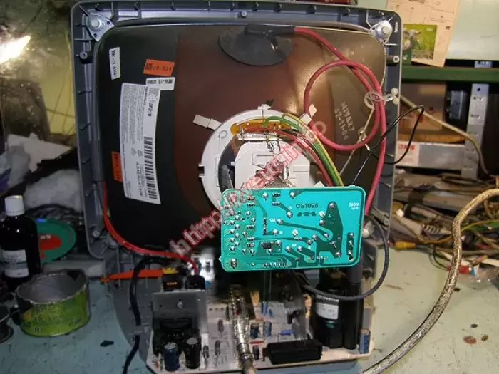 В устаревшем ЭЛТ телевизоре Mivar 14P2 отсутствует звук стандарта D-K, клиент просит его переделать. Мы выполняем такой ремонт телевизоров, когда проблема в модуле радиоканала, поэтому заменены фильтры ПАВ- К2955, SFE- 6,5, Т-6,5, выполнено включение в сервис - режиме стандарта D-K, подстройка геометрии. Сетка вещания B-G для приема в телевизоре программ метрового диапазона, поэтому необходимо производить точную настройку на канал. При приеме ДМВ каналов подстройка не требуется. Цвета системы SECAM нет, только PAL. Таким ремонтом заказчик остался доволен.