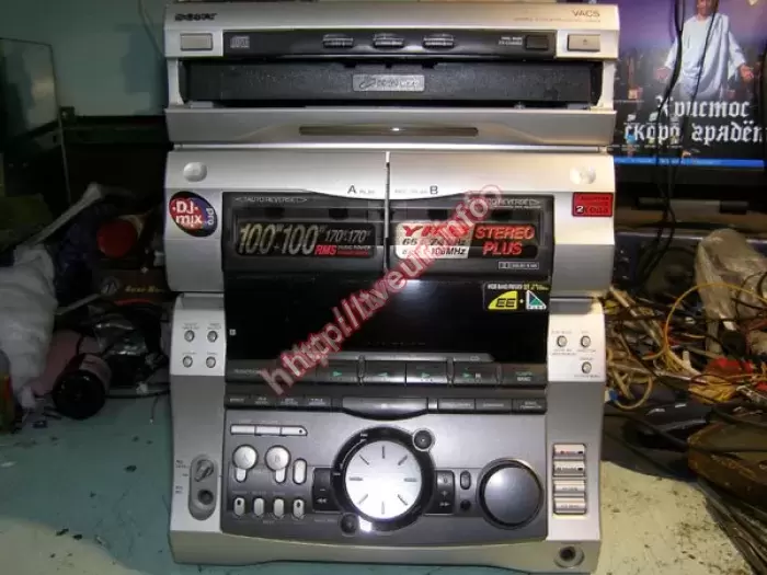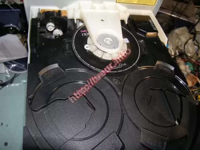 В МЦ не работает механизм карусели, не читает диски. Проведен ремонт музыкальных центров, который состоял в юстировке механизма карусели, замене SLED-мотора, реставрации шестерни и юстировке привода CD плюс профилактика.