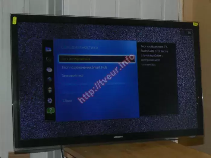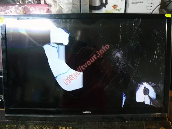 В поступившем телевизоре Samsung UE32H4500AK, который после падения, очень сильно поврежден экран, на котором много разных механических повреждений. С такой неисправностью единственно правильным решением будет заменить экран на телевизоре. На приемке заказчик рассказал, что телевизор приобретен достаточно давно и за время эксплуатации уже второй раз выходит из строя. Первый раз в телевизоре не было изображения, так как возникла проблема с подсветкой. Он обратился в сервисный центр, там перепаяли несколько светодиодов, благодаря чему проблема решилась положительно. В этот раз ремонт нужен по причине того, что телевизор упал со стола на пол. В результате изображение пропало, на матрице появились многочисленные дефекты. Поскольку мы можем заменить экран на телевизоре, поэтому приняли его в работу.