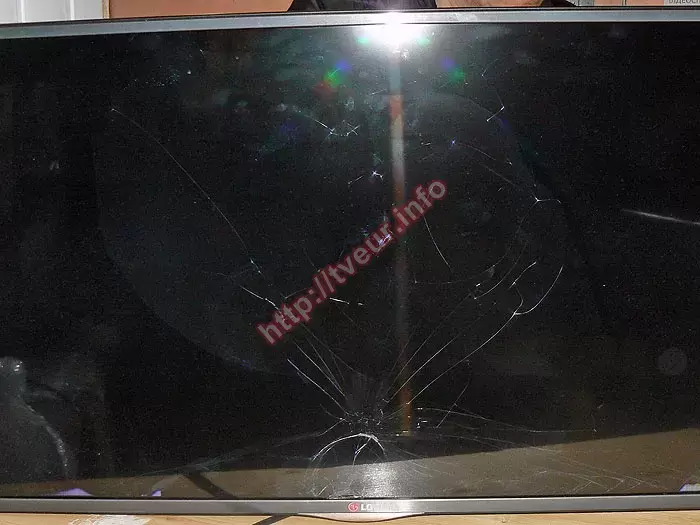 В телевизоре LG 39LA620V очень сильно механически повреждена 39-дюймовая (99 см) матрица, изображение полностью пропало. С такой проблемой этот телевизор поступил в нашу мастерскую. Заказчик попросил, чтобы вначале была выполнена диагностика телевизоров во время которой определено, что еще кроме матрицы пострадало при падении. От него узнали, что телевизор был установлен на тумбе в комнате, но в спешке его задели и он рухнул на пол. В результате на экране многочисленные дефекты, картинки нет, но как он понял, рамка осталась целая. Клиент предполагает, что из-за падения могли выйти из строя другие модули, что отобразится на конечной стоимости ремонта. Только после диагностики телевизора он сможет принять решение, выполнять ли ремонт или приобрести новую модель.