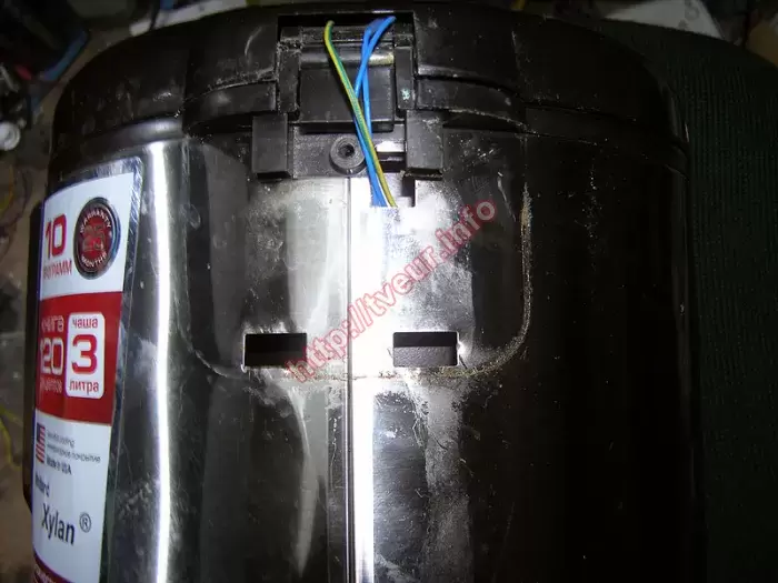 Мультиварка Redmond RMC-M10 плохо работает, у нее при включении ошибка Е1, поэтому пользователь обратился в сервисный центр, чтобы там выполнили срочный ремонт мультиварок. Во время осмотра стало понятно, что устройство в удовлетворительном состоянии, его корпус грязный, в потеках и зажиренный (фото № 1 и 4), при этом дисковый нагреватель не прогоревший (видно на фото № 2). Чтобы узнать, какова причина поломки нужна предварительная диагностика. Данная модель мощностью 500 Вт, наделена десятью автоматическими программами приготовления, у нее имеется дисплей, а также функция пароварки. К особенностям мультиварки можно отнести функцию разогрева, что позволяет разогревать готовые блюда с холодильника, а также функцию автоматического подогрева, которая автоматически запускается после окончания приготовления, поддерживая длительное время блюдо в горячем состоянии. В результате диагностики стало понятно, что проблема в крышке, так как в ней произошел обрыв провода термодатчика (фото № 3). Исходя из этого ремонт мультиварок состоял в восстановлении термоуправления, перепайке некоторых деталей. Неисправность удалось полностью устранить. После ремонта пользователю дан ряд рекомендаций по дальнейшей правильной эксплуатации мультиварки.
