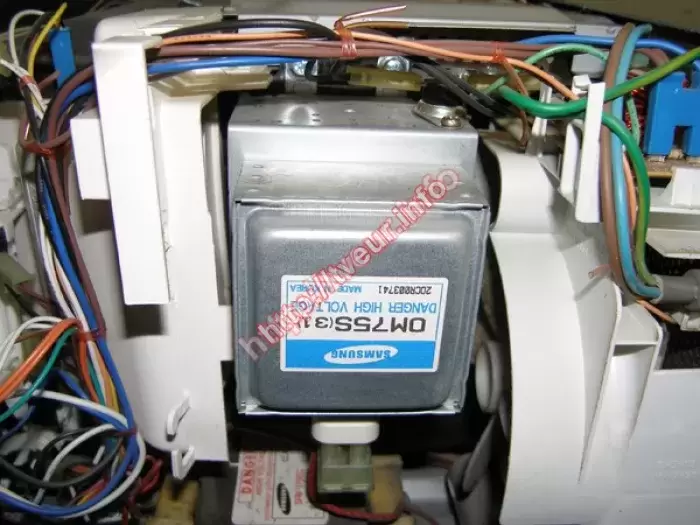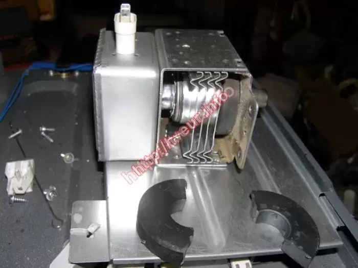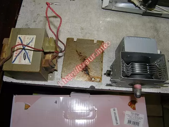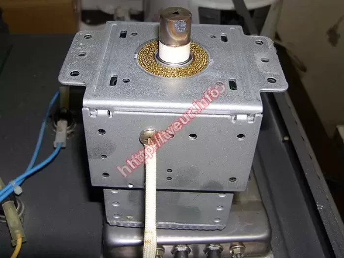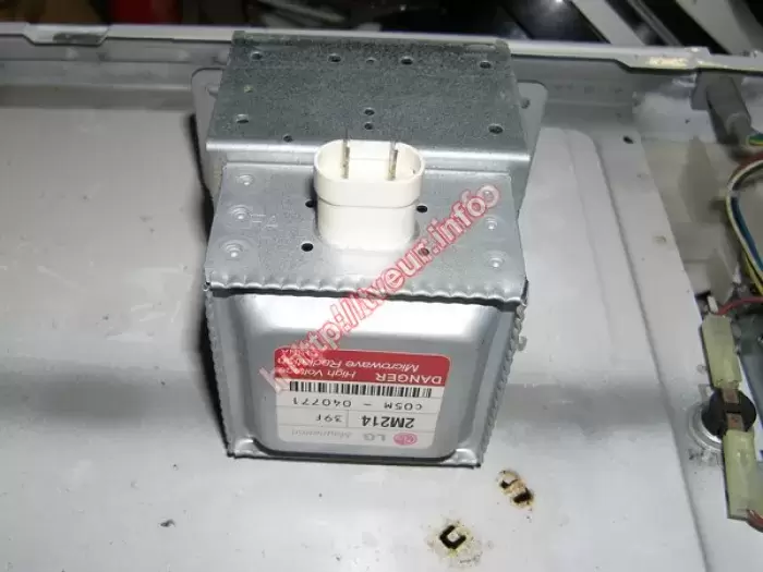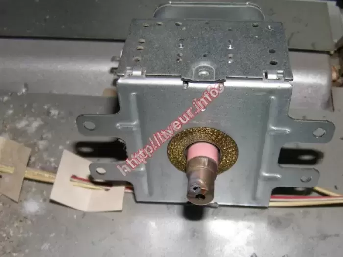 Есть несколько причин, по которым магнетрон может выйти из строя: перепады напряжения, короткое замыкание, неисправность проходного конденсатора, а также длительное использование. Естественно понадобится замена магнетрона.