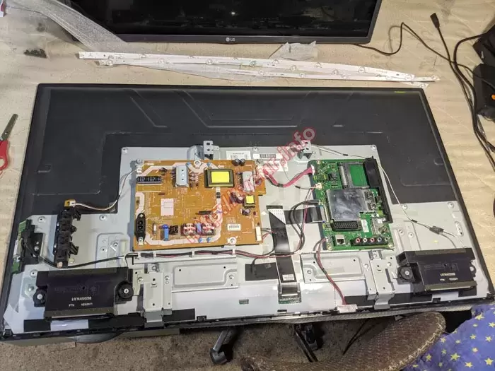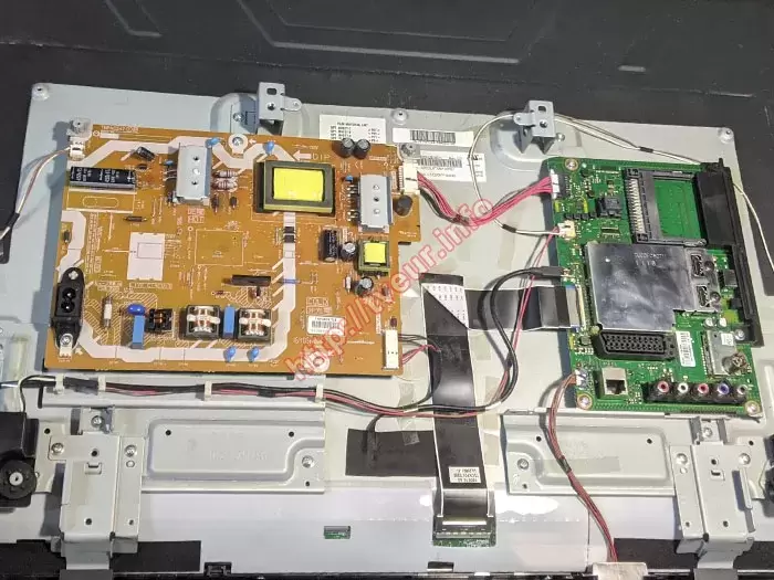 Телевизор поступил в сервисный центр в хорошем внешнем состоянии: корпус и рамка аккуратные, экран без трещин, сколов и следов механического воздействия. Визуальных повреждений не обнаружено. Однако при попытке включения устройство не подавало признаков жизни, индикатор питания не загорался, что указывает на отсутствие запуска основных цепей. В таких случаях необходима детальная диагностика ЖК телевизора, чтобы определить источник неисправности. Для проведения проверки специалист аккуратно демонтировал заднюю крышку, обеспечив доступ к внутренним узлам устройства. В данной модели используется блок питания TNPA6247 и матрица L5EDDYY00843. В ходе обследования измерены основные питающие линии, проверены силовые цепи, а также тестировались элементы вторичных преобразователей. Диагностика показала, что неисправность сосредоточена в модуле питания - на плате выявлено множество дефектных радиоэлементов, включая пробитые диоды, перегоревшие резисторы и вздутые электролитические конденсаторы. Также выявлены повреждения в сигнальных цепях, передающих команды запуска и стабилизации питания между блоками. Для восстановления работоспособности потребуется ремонт модуля питания с последующей проверкой корректности выходных напряжений и восстановления сигнальных линий управления.