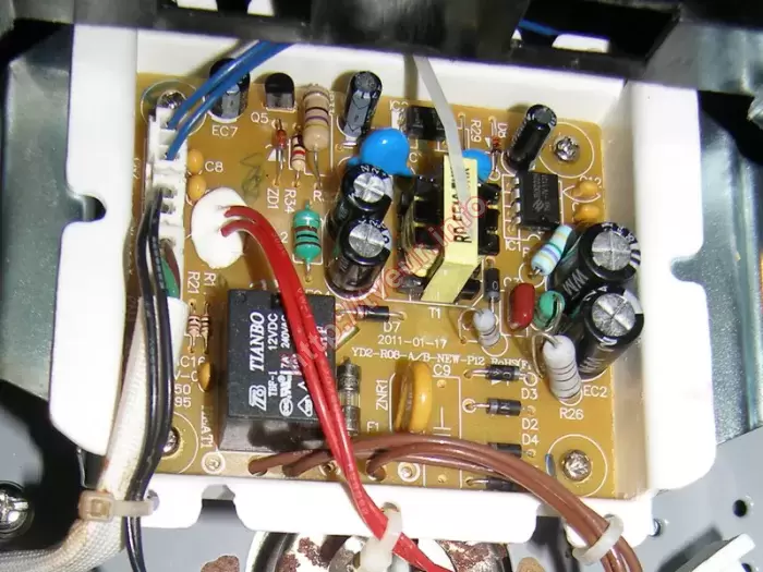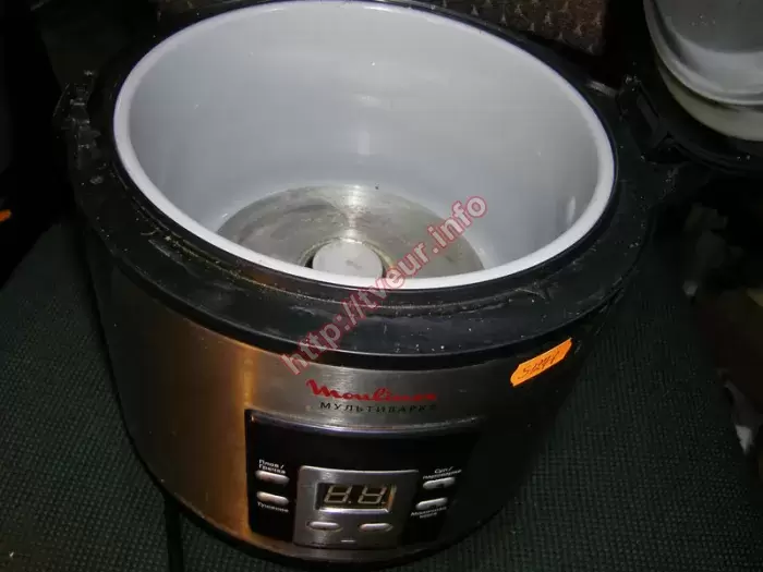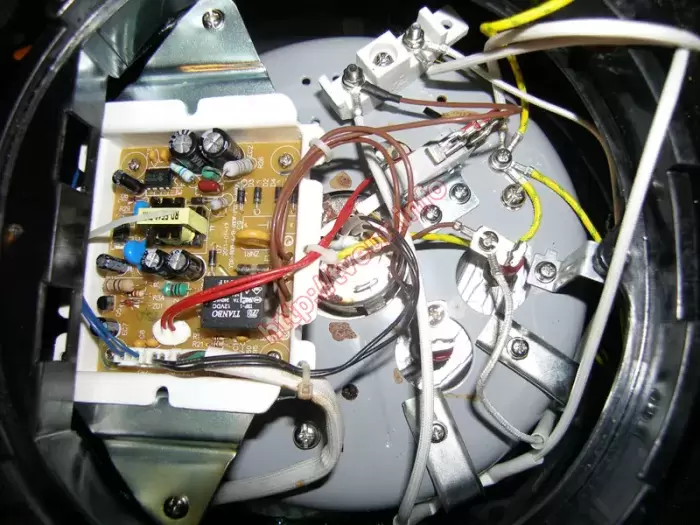 Мультиварка Moulinex R08-A с мощностью 450 Вт выключилась во время приготовления блюда, после чего не включается вообще. Пользователь обратился в нашу мастерскую и попросил, чтобы был сделан срочный ремонт мультиварок. В данной модели используется реле TIANBO TBF-1 12VDC, у нее пять автоматических программ приготовления (каша, крупа, тушение, приготовление на пару, плов). Она наделена такими востребованными функциями, как поддержание тепла и отложенный старт. Любители блюд на пару имеют возможность воспользоваться специальной корзиной, которая входит в состав поставки. Прежде чем был выполнен ремонт мультиварок, мастер сделал заключение, что эта бытовая техника в удовлетворительном состоянии. Корпус немного грязный, из-за того, что на дисковый нагреватель попадала вода или другая жидкость, в результате на нем видны потеки (фото №2). Кроме того, не стартует ИБП (источник бесперебойного питания), из строя вышел модуль питания. С такими неисправностями наши мастера сталкиваются практически ежедневно, поэтому на практике знают, как выполнять ремонт. В данном случае удалось устранить поломку в модуле питания. Также перепаяны некоторые компоненты, в том числе резистор 4,7Mom1w. Мультиварка включается, она отлично работает во всех программах. Пользователю необходимо обратить внимание на то, чтобы в дальнейшем на дисковый нагреватель ни в коем случае не попадала жидкость. Также за техникой необходимо периодически ухаживать.