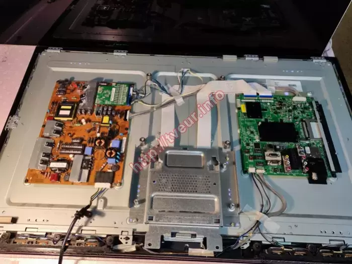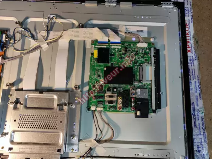 Первоначальный осмотр показал, что не смотря на такое длительное использование данный телевизор в достаточно хорошем состоянии, при этом рамка в некоторых местах с потертостями. Матрица телевизора без каких-либо механических дефектов. Для проведения диагностики и определения причины неисправности телевизор полностью разобрали и узнали, что в нем используются следующие компоненты - плата Main Board EAX61762608(1), тюнер EBL60740402, микросхема Hynix H5TQ1G63BFR, процессор LGE3556C, матрица LC370EUH(SC)(A1). Выполненная диагностика подтвердила предположения, что требуется ремонт материнской платы телевизора LG, в работе которой возникли проблемы, а именно сгорели разные радиодетали, в том числе микросхема SMD монтажа.